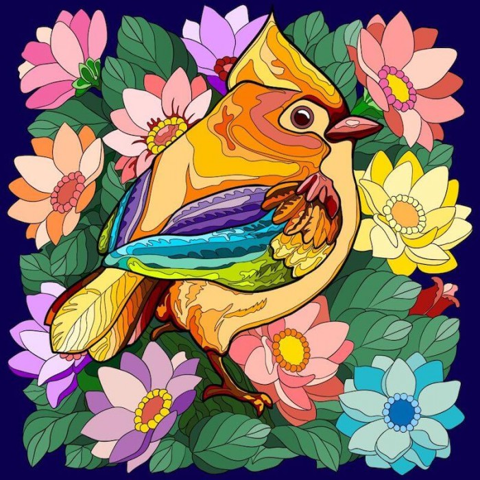 Oiseau parmi les fleurs