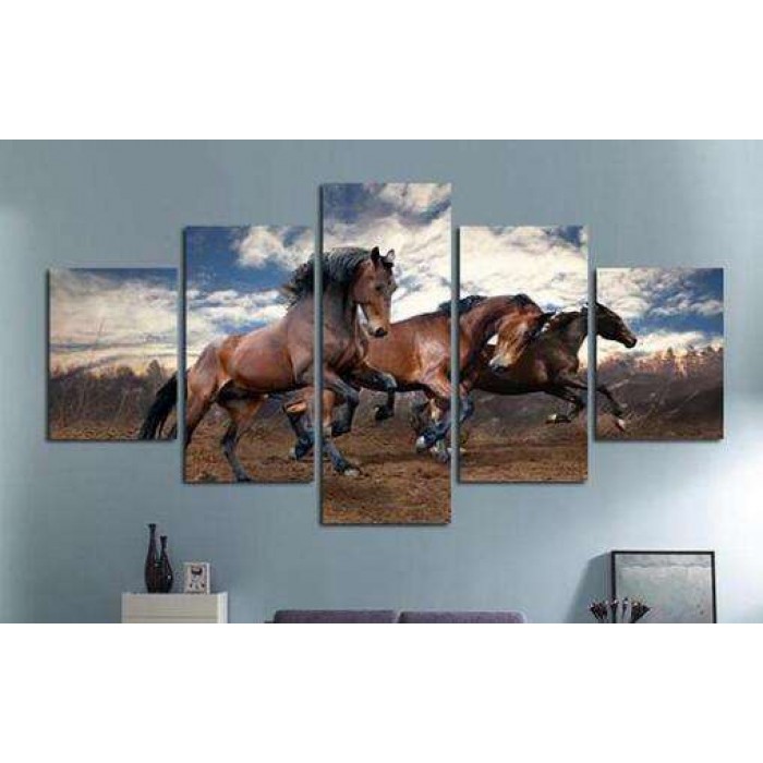 Chevaux au galop | Cinq panneaux Broderie Diamant