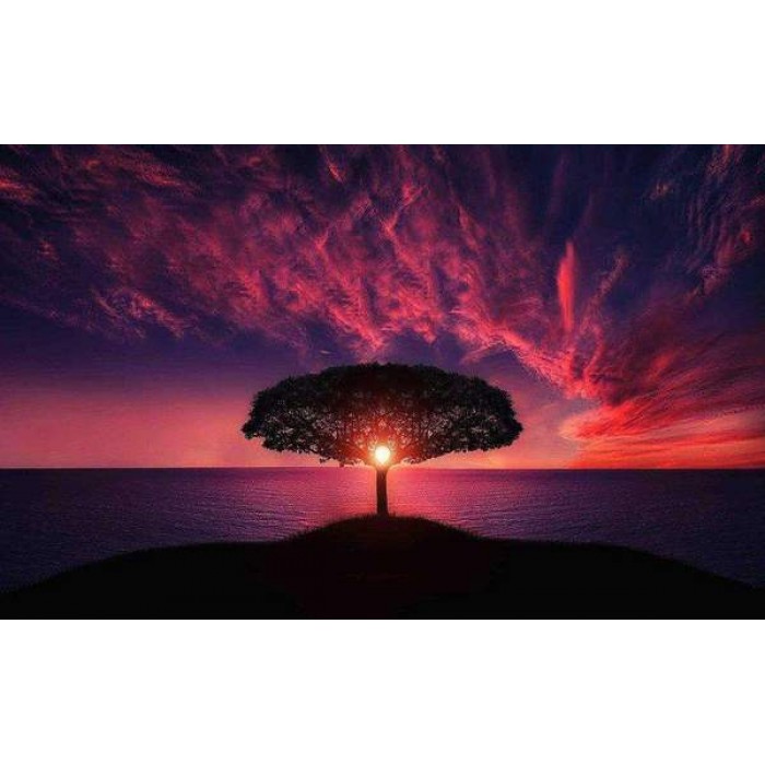 Coucher de soleil rouge sur arbre Broderie Diamant