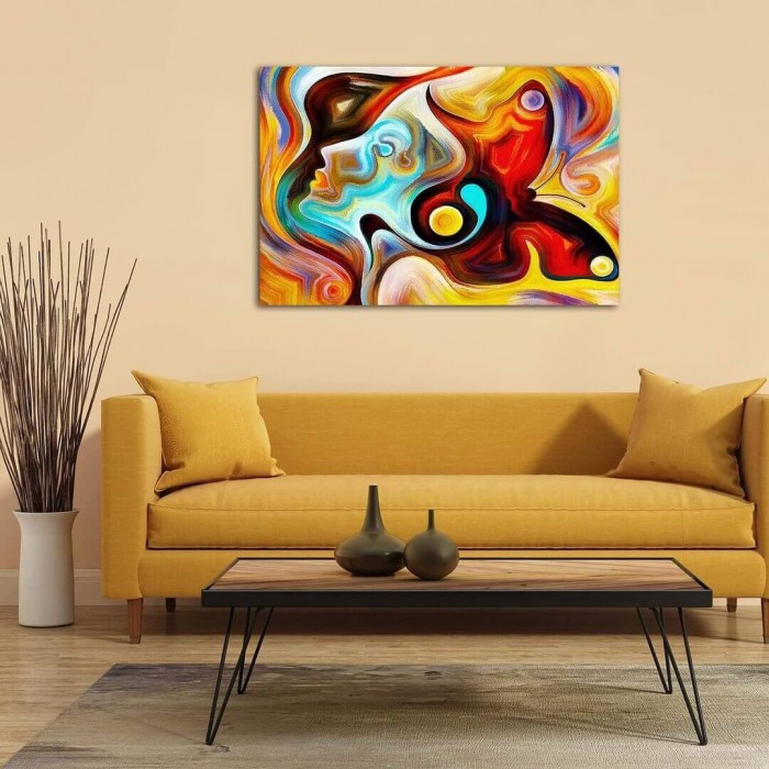 Visage abstrait dans beaucoup de couleurs de 50x80cm